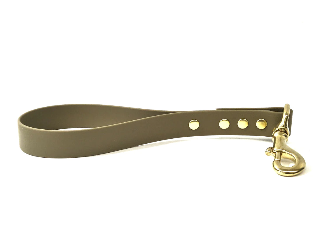 Both colourful and practical our range of PVC /TPU coated waterproof Traffic Handles are practical, hard-wearing and stylish. Our traffic handles are 35cm long (including clasp) and come in either 20mm or 25mm widths. They come in a choice of Brass, Stainless Steel, Rose Gold or Black snap hooks that can be fastened to any collar.